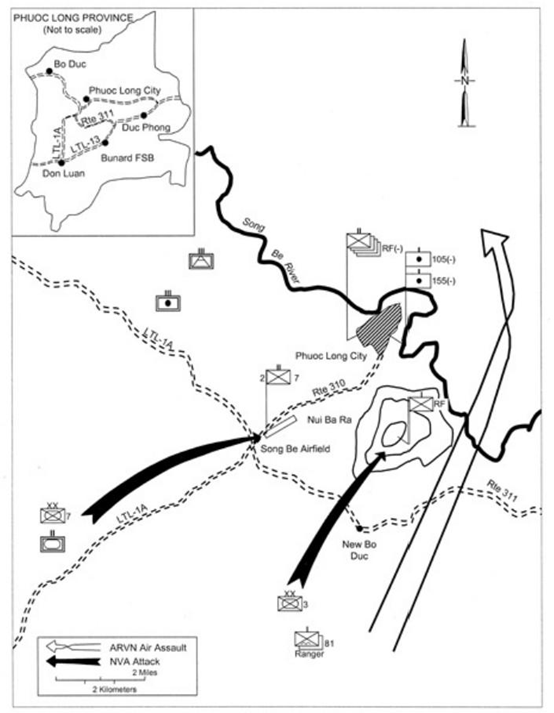 Trận chiến bắt đầu ở tỉnh Phước Long vào tháng 12 tiếp tục diễn ra vào năm mới. Thủ phủ của tỉnh là Phước Bình nằm cách Sài Gòn 75 dặm về phía bắc, nơi được kết nối qua các tuyến đường 1A và 14. Tỉnh này bao gồm bốn huyện: Đức Phong, Phước Bình, Bố Đức và Đôn Luân (xem bản đồ 13). Vào đầu trận chiến, lực lượng miền Nam tại Phước Long bao gồm 5 tiểu đoàn Địa phương quân (ĐPQ), 3 đại đội trinh sát, 48 trung đội Dân quân và 4 tiểu đoàn pháo binh địa phương.