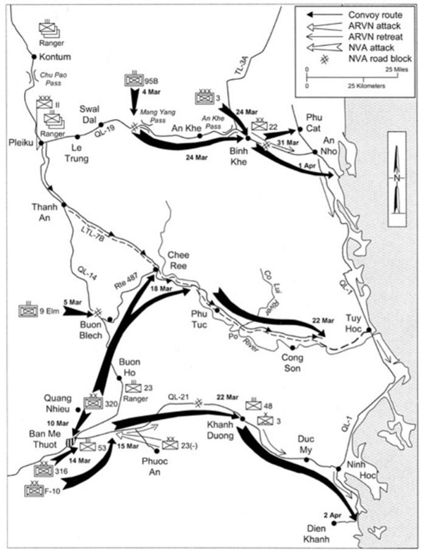 Hầu hết đồng đội tôi đã chết trên đường. . . . Có rất nhiều xác chết la liệt trên đường. Một số vẫn còn sống nhưng họ không có thức ăn và nước uống. Không có ai chăm sóc họ. Chỉ huy của chúng tôi, trung tá, đã chạy trốn để bảo toàn mạng sống và không có ai phụ trách. . . . chúng tôi chỉ cố gắng chiến đấu để dọn đường cho chính mình, chúng tôi không bảo vệ được ai. Hầu hết đồng đội trong tiểu đoàn của tôi vẫn còn trên đường. Một số đã chết, một số bị thương, một số đang cố gắng vượt qua khu rừng rậm. Có hơn 12 tiểu đoàn khác từ Pleiku và Kontum và Phú Bổn vẫn còn ở lại. Họ ở phía sau đoàn xe vì họ chưa bao giờ nhận được lệnh rút lui.