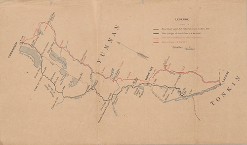 Công ty Hỏa xa Đông Dương - Vân Nam được cấp quyền xây dựng theo thỏa thuận năm 1901, bắt đầu thi công tuyến đường sắt Lào Cai-Vân Nam Phủ vào tháng 6/1908 và hoàn thành vào ngày 01/4/1910, ngày mà đầu máy xe lửa đầu tiên tới Vân Nam Phủ.