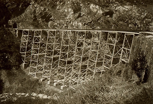 Trên thực tế, tuyến đường sắt đi qua 155 đường hầm với tổng chiều dài hơn 16km. Để hỗ trợ nó, một số công trình chống đỡ quy mô lớn đã được xây dựng, những cây cầu đủ kích cỡ đôi khi kết hợp sắt, đá và gỗ, cầu cạn bằng thép và hành lang được khoan sâu vào đá. Tuy nhiên, ở những công trình xây dựng trên không này, kim loại chiếm ưu thế, nổi bật ở đây, phía trên bản mặt cầu, những mái vòm hoành tráng hoặc một chuỗi mái vòm mềm mại được dựng lên để hỗ trợ đường ray, các tấm cốt thép có vẻ ngoài thanh thoát đến mức nhìn từ xa chúng tựa như dải đăng ten lấp lánh trải dài trên bầu trời xanh rực rỡ.