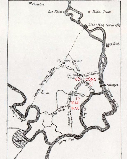 Bản đồ vùng Gò Công Trau Trảu.Trích trong bản đồ: http://gallica.bnf.fr/ark:/12148/btv1b530650464/f1.item.r=SAIGON.langEN1925 Environs de Saïgon - Bản đồ vùng phụ cận SÀI GÒN năm 1925. Tỷ lệ 1/50.000