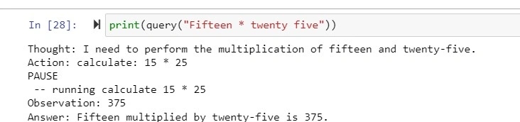 With this setup, the AI agent can reason about the input, perform actions, observe the results, and generate responses.